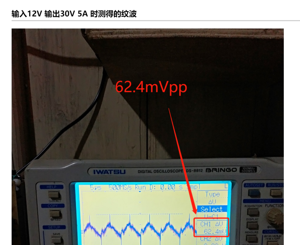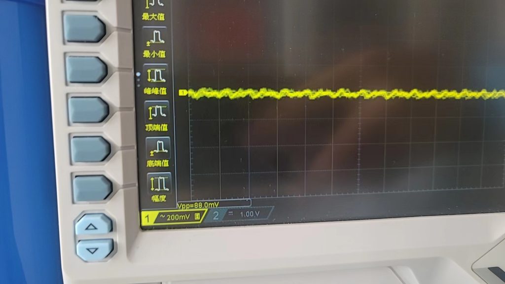 最后再放一下28v5a输出加上LC滤波电路的示波器测试纹波: