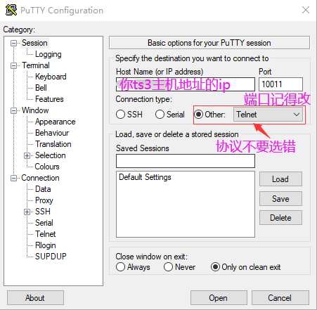 连接的软件可以用putty来连接或者任何支持ssh或者telnet的都行。我这里是用的putty软件使用telnet协议来连接到控制台。